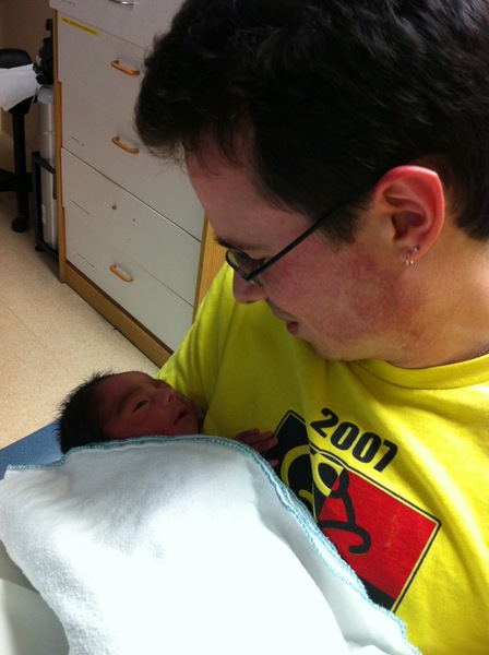 This is from the batch of pictures taken of me and Isaac. Technically this is Christmas Day, 2011. He's about 22 hours old here. The nurses suggest we keep his face in shadow as it was kind of bright in the NICU at times.