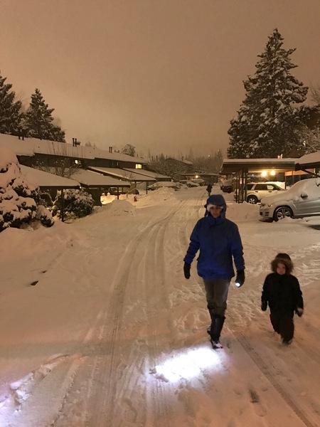 So at least once per year on a snowy evening, it would fall to me to talk Hillary into going on a walk around in the snow. This became more rare once we moved back to Vancouver. We had a couple of years in there where we got no snow at all.